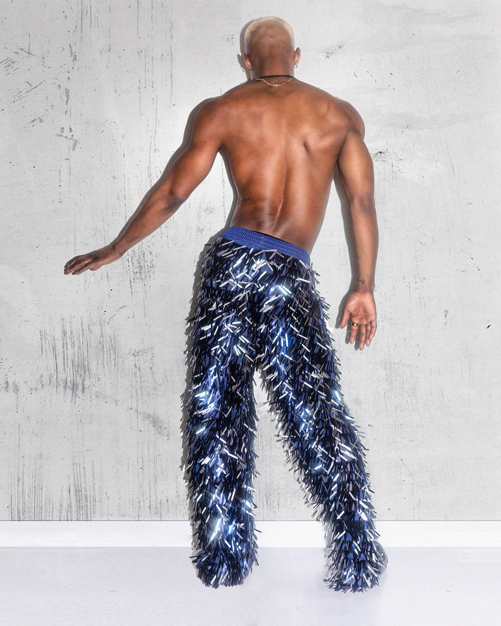 Futuristic Sequin Blue/Silver Men's Pants - Iridescent Reflective Statement Trousers