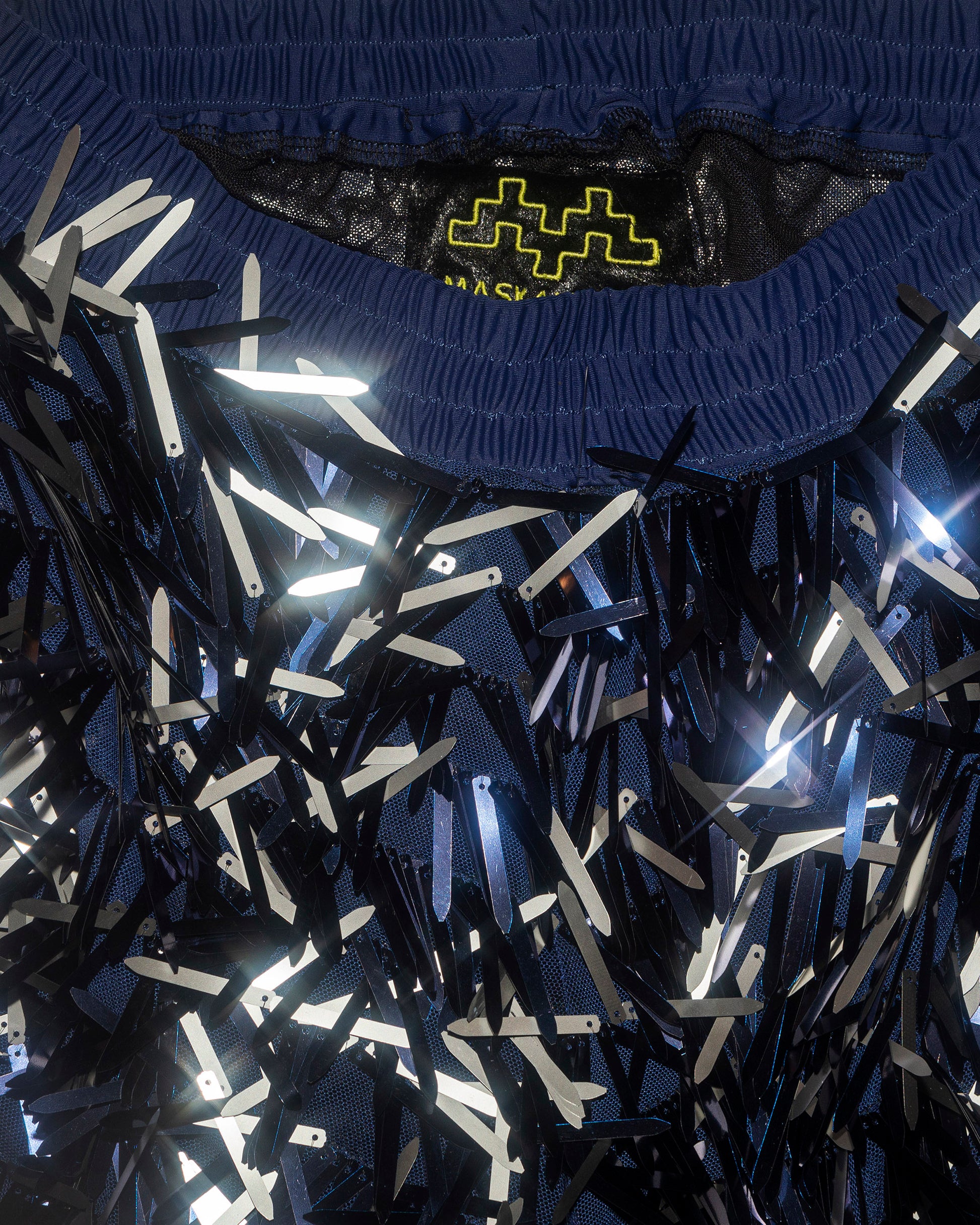 Step into the spotlight with these dazzling sequin men's pants from Mask4Mask, designed for those who aren't afraid to make a bold statement. These iridescent trousers shimmer with every movement, reflecting a spectrum of vibrant colors that are sure to turn heads. The black elastic belt, adding both style and comfort to the design. Perfect for nightlife, festivals, or any occasion where you want to stand out, these pants combine high fashion with a touch of futuristic flair. Crafted for a comfortable yet striking fit, these pants are a must-have for the modern man with an edge.
