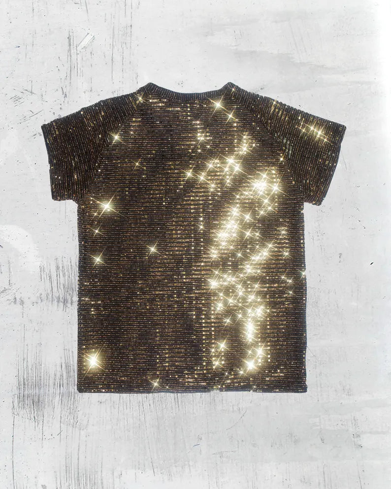 Men's Gold Shirt | Gold Sequin Sparkle T-Shirt - Men's Glitter Shirt | Disco Rave Party